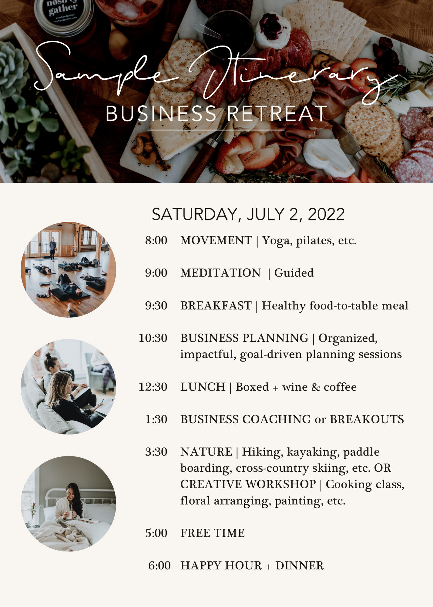 So there you have it. If any of this sounds like something your business needs - we love dreaming, creating, and planning. Schedule your complimentary 30-minute consultation and tell us all about your retreat goals.